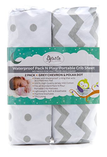 - Product Name: Ely's & Co. Kid's Waterproof Pack n Play Portable Mini Crib Sheet with Mattress Pad Cover Protection, White and Grey Chevron and Polka Dots (2 Pack)